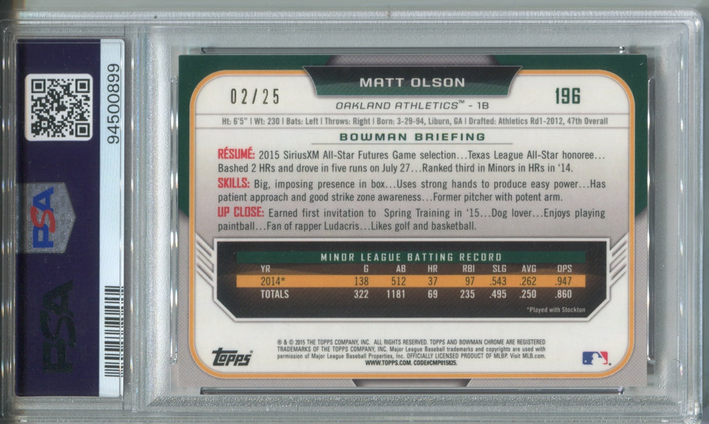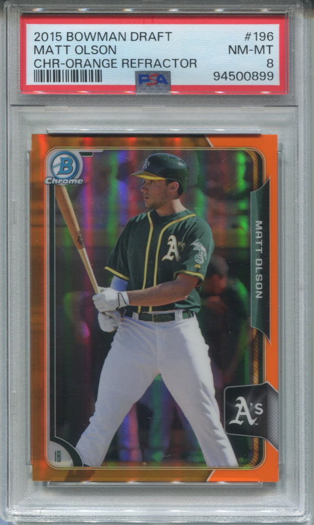2015 Matt Olson Bowman Chrome Draft ORANGE REFRACTOR 02/25 PSA 8 #196 Oakland A's 0899
