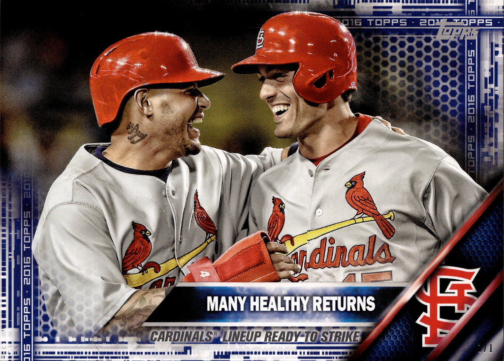 2016 Yadier Molina Randal Grichuk Topps 5X7 MANY HEALTHY RETURNS BLUE 1/1 ONE OF ONE #492 St. Louis Cardinals
