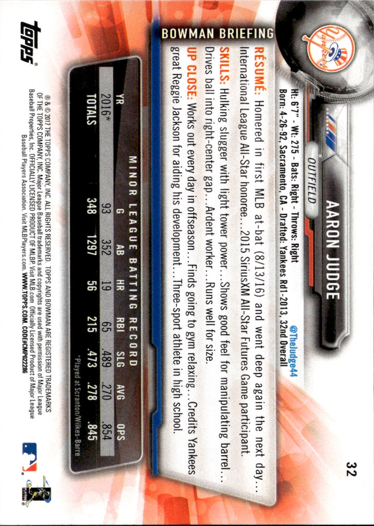 2017 Aaron Judge Topps Bowman ROOKIE New York Yankees #32 7