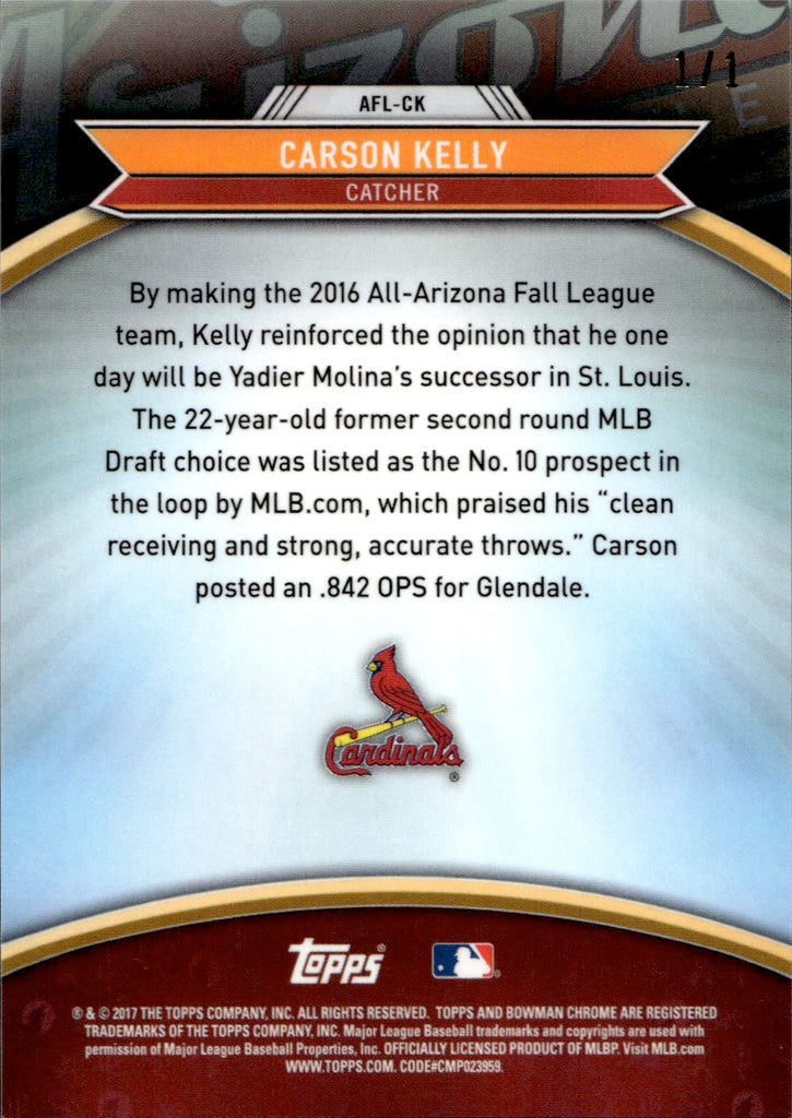 2017 Carson Kelly Bowman Chrome AFL FALL STARS SUPERFRACTOR 1/1 ONE OF ONE #AFL-CK St. Louis Cardinals