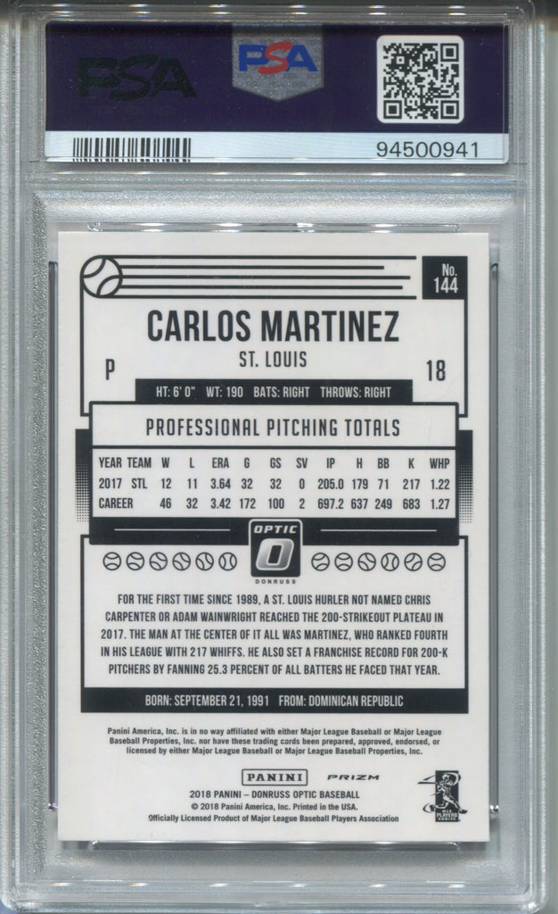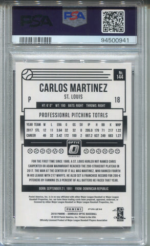 2018 Carlos Martinez Panini Donruss Optic PINK PSA 10 #144 St. Louis Cardinals 0941