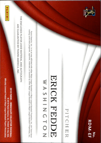2018 Erick Fedde Panini Immaculate ROOKIE DUAL MATERIAL AUTOGRAPHS JERSEY AUTO 71/99 Washington Nationals #RDM-EF