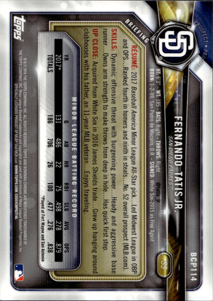 2018 Fernando Tatis Jr. Bowman Chrome BLUE REFRACTOR PROSPECT 71/150 San Diego Padres #BCP114