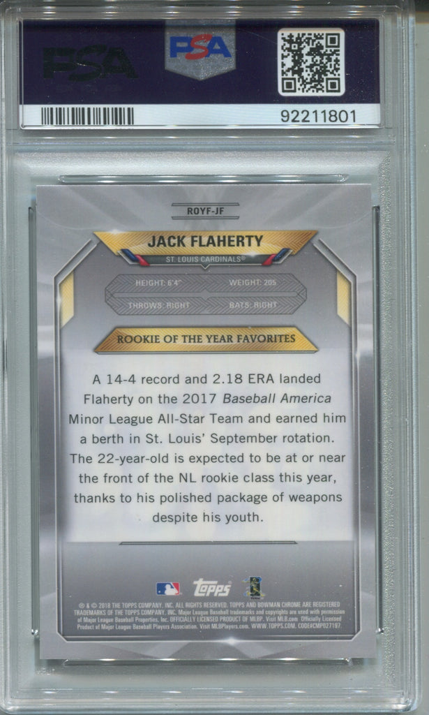 2018 Jack Flaherty Bowman Chrome ROY FAVORITES REFRACTOR ROOKIE RC PSA 10 #JF St. Louis Cardinals 1801