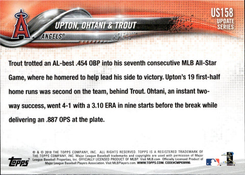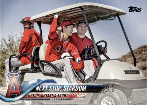 2018 Justin Upton Shohei Ohtani and Mike Trout Topps Update NEXT STOP STARDOM ROOKIE RC #US158 Los Angeles Angels