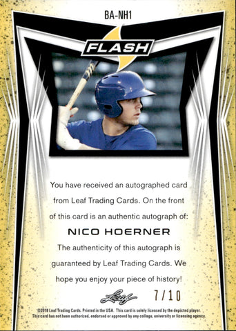 2018 Nico Noerner Leaf Flash ORANGE SPECKLE AUTOGRAPH 7/10 AUTO #BA-NH1 Chicago Cubs