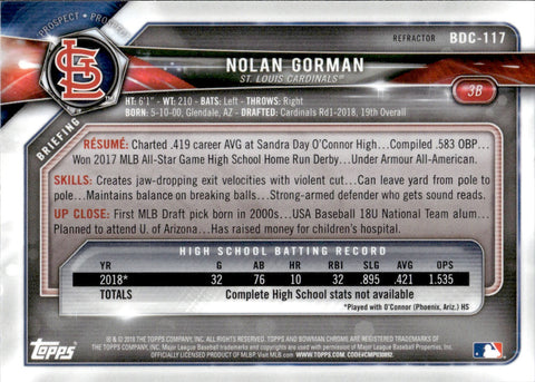 2018 Nolan Gorman Bowman Draft Chrome REFRACTOR 1ST BOWMAN #BDC-117 St. Louis Cardinals
