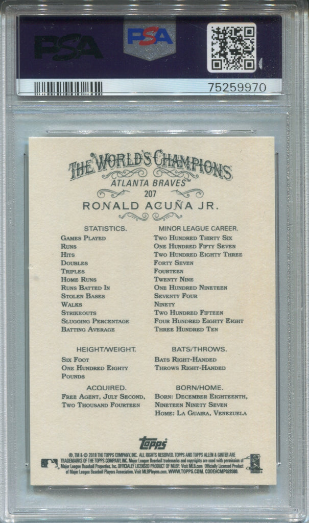 2018 Ronald Acuna Jr. Topps Allen & Ginter ROOKIE RC PSA 10 #207 Atlanta Braves 9970