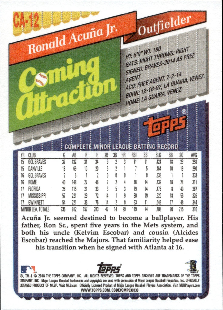 2018 Ronald Acuna Jr. Topps Archives ROOKIE 1993 DESIGN COMING ATTRACTIONS RC #CA-12 Atlanta Braves