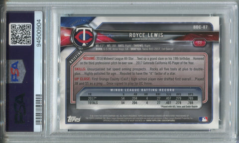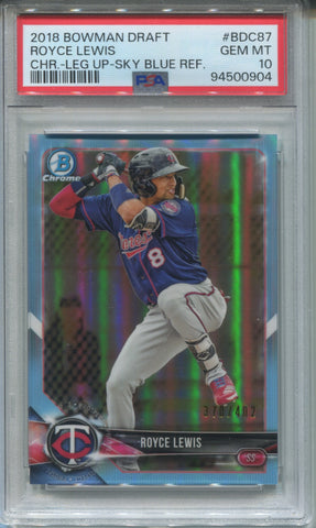 2018 Royce Lewis Bowman Chrome Draft LEG UP SKY BLUE REFRACTOR 370/402 PSA 10 #BDC87 Minnesota Twins 0904