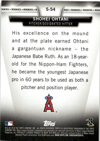 2018 Shohei Ohtani Topps SALUTE ROOKIES RC #S-54 Los Angeles Angels