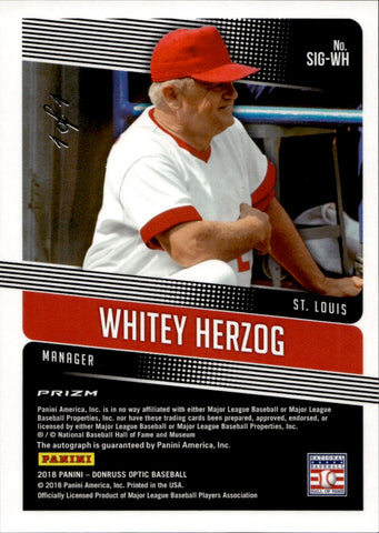 2018 Whitey Herzog Donruss Optic GOLD VINYL SIGNIFICANT SIGNATURES AUTO 1/1 ONE OF ONE AUTOGRAPH #SIG-WH St. Louis Cardinals HOF