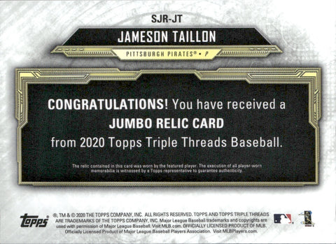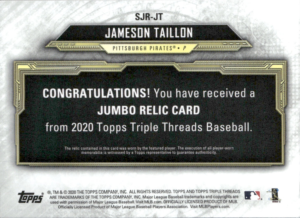 2020 Jameson Taillon Topps Triple Threads JUMBO RELIC GOLD JERSEY 6/9 #SJR-JT Pittsburgh Pirates