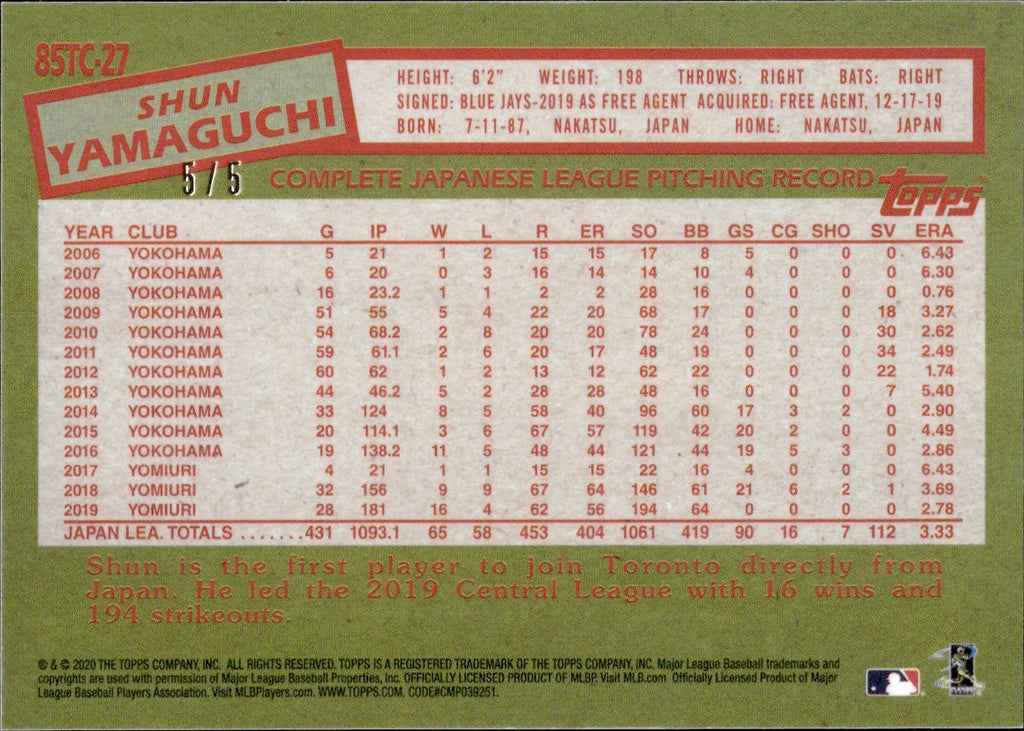 2020 Shun Yamaguchi Topps 1985 SILVER PACK CHROME RED MOJO ROOKIE RC 5/5 #85TC-27 Toronto Blue Jays