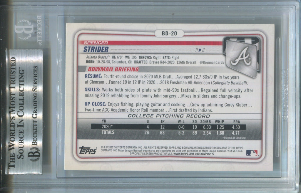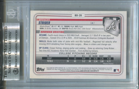 2020 Spencer Strider Bowman Draft 1ST BOWMAN BAS AUTHENTIC AUTO AUTOGRAPH #BD20 Atlanta Braves 3179