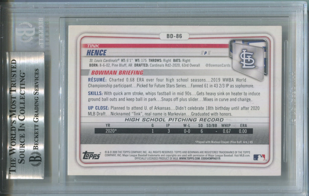 2020 Tink Hence Bowman Draft BAS AUTHENTIC AUTO AUTOGRAPH #BD86 St. Louis Cardinals 3181