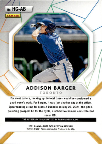 2021 Addison Barger Panini Elite Extra Edition HIDDEN GEMS AUTO AUTOGRAPH #HG-AB Toronto Blue Jays