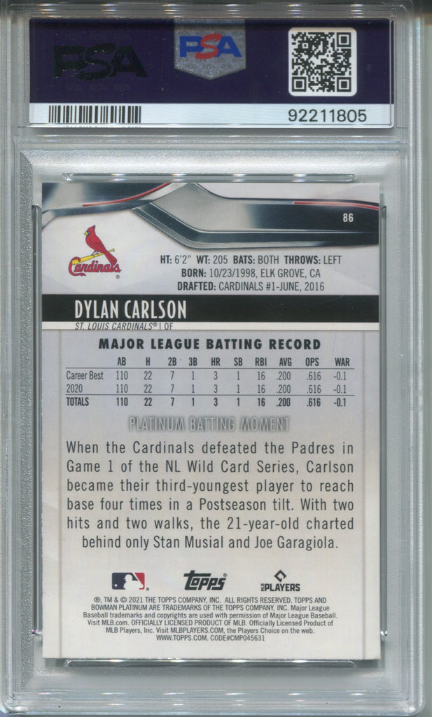 2021 Dylan Carlson Bowman Platinum ROOKIE RC PSA 8 #86 St. Louis Cardinals 1805