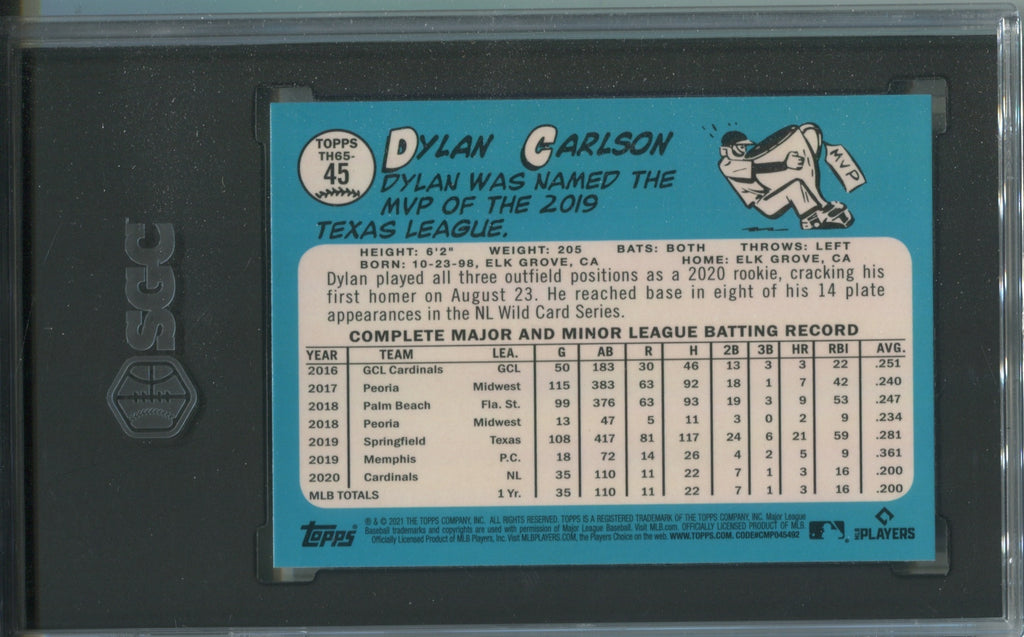 2021 Dylan Carlson Topps Chrome ROOKIE 1965 REDUX REFRACTOR RC SGC 9 #TH65-45 St. Louis Cardinals 5084
