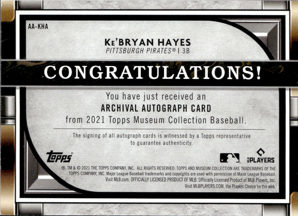 2021 Ke'Bryan Hayes Topps Museum Collection ARCHIVAL AUTOGRAPHS 261/300 AUTO #AA-KHA Pittsburgh Pirates