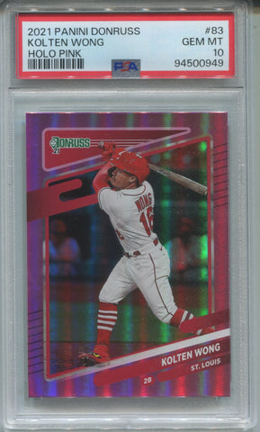 2021 Kolten Wong Panini Donruss HOLO PINK PSA 10 #83 St. Louis Cardinals 0949