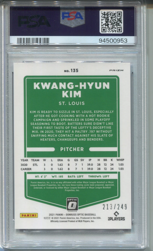 2021 Kwang-Hyun Kim Donruss Optic PINK VELOCITY 213/249 PSA 10 #135 St. Louis Cardinals 0953