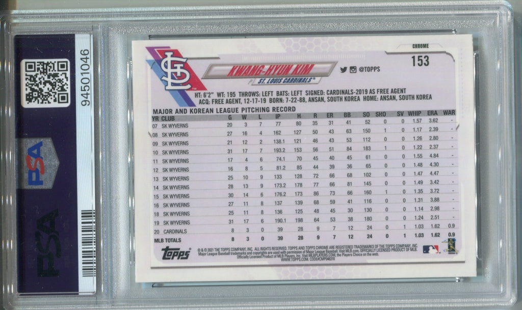 2021 Kwang-Hyun Kim Topps Chrome PSA 9 #153 St. Louis Cardinals 1046