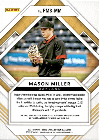 2021 Mason Miller Panini Elite Extra Edition PROSPECT MATERIALS SIGNATURES AUTOGRAPH JERSEY AUTO #PMS-MM Oakland A's