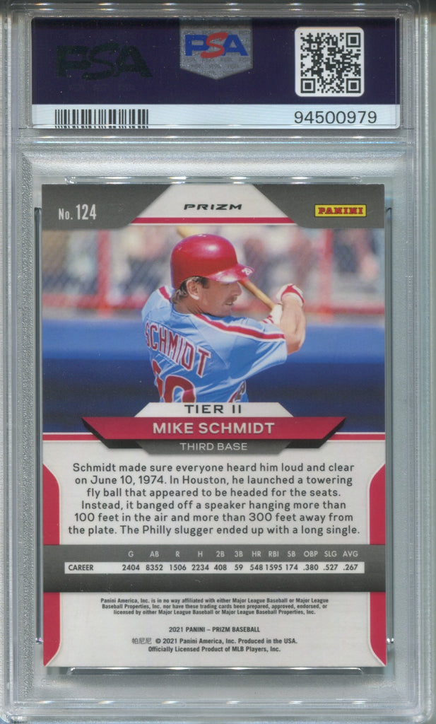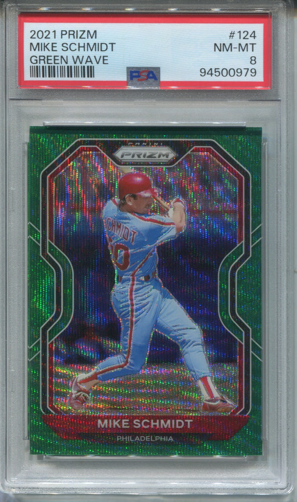 2021 Mike Schmidt Panini Prizm GREEN WAVE PSA 8 #124 Philadelphia Phillies HOF 0979