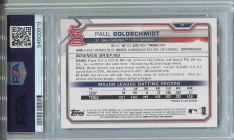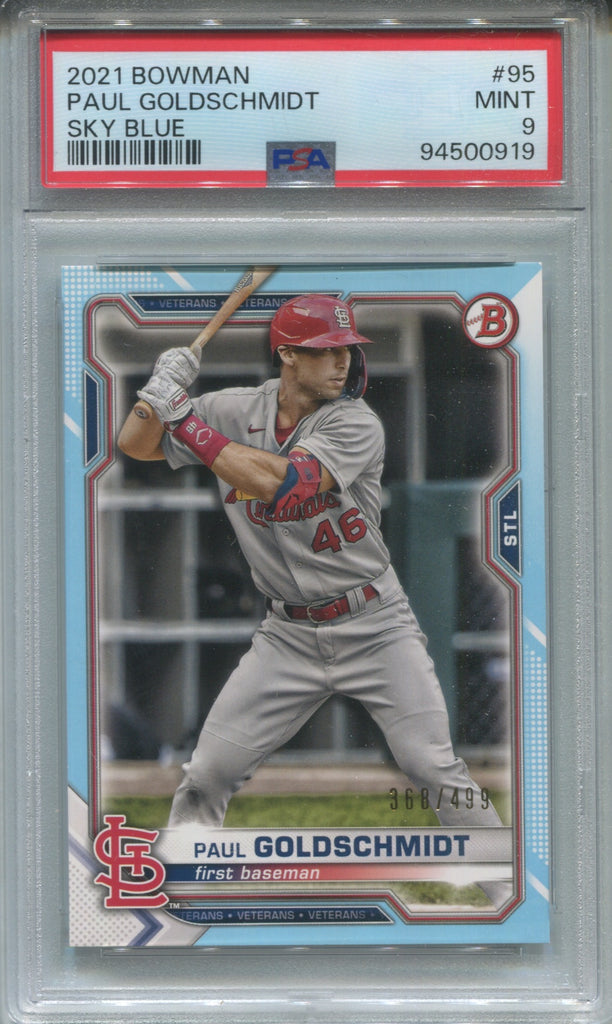 2021 Paul Goldschmidt Bowman SKY BLUE 368/499 PSA 9 #95 St. Louis Cardinals 0919