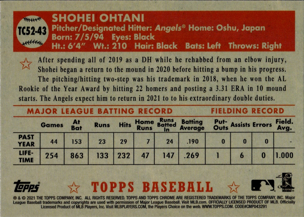2021 Shohei Ohtani Topps Chrome 1952 REDUX REFRACTOR #TC52-43 Anaheim Angels