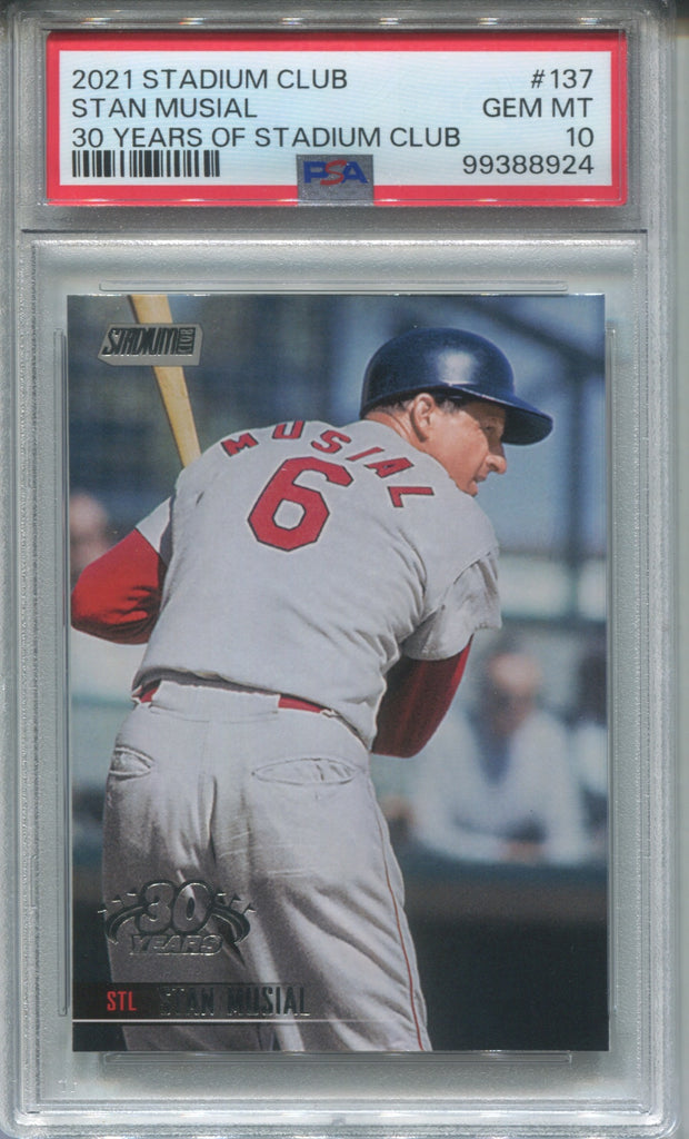 2021 Stan Musial Topps Stadium Club 30 YEARS OF STADIUM CLUB SP /30 PSA 10 #137 St. Louis Cardinals HOF 8924