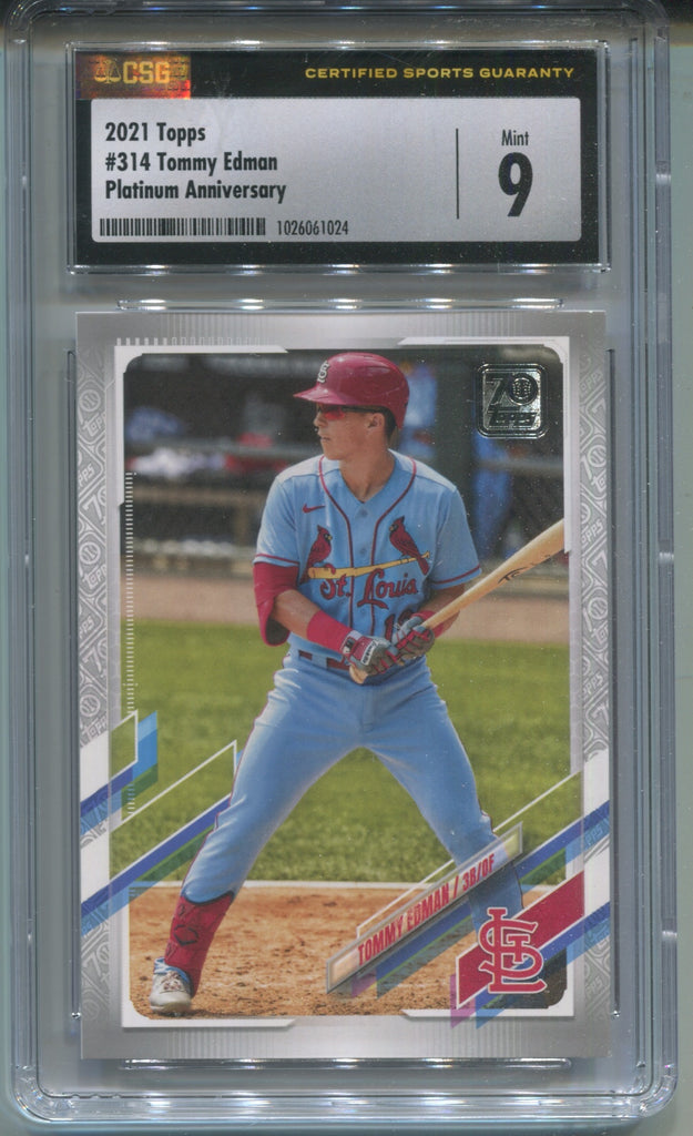 2021 Tommy Edman Topps Series 1 PLATINUM ANNIVERSARY 34/70 CSG 9 #314 St. Louis Cardinals 1024
