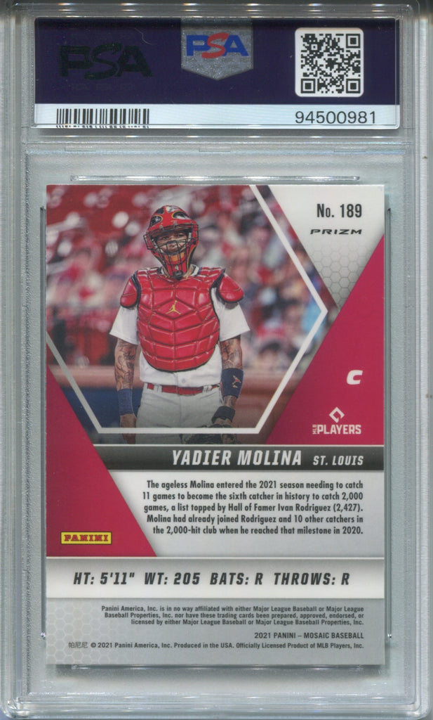 2021 Yadier Molina Panini Mosaic PSA 10 #189 St. Louis Cardinals 0981