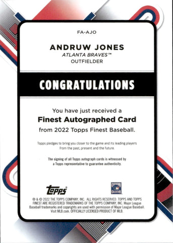 2022 Andruw Jones Topps Finest GREEN WAVE AUTO 99/99 AUTOGRAPH #FA-AJO Atlanta Braves
