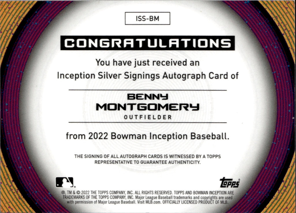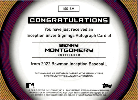 2022 Benny Montgomery Bowman Inception SILVER SIGNINGS SILVER INK AUTO 048/100 AUTOGRAPH #ISS-BM Colorado Rockies
