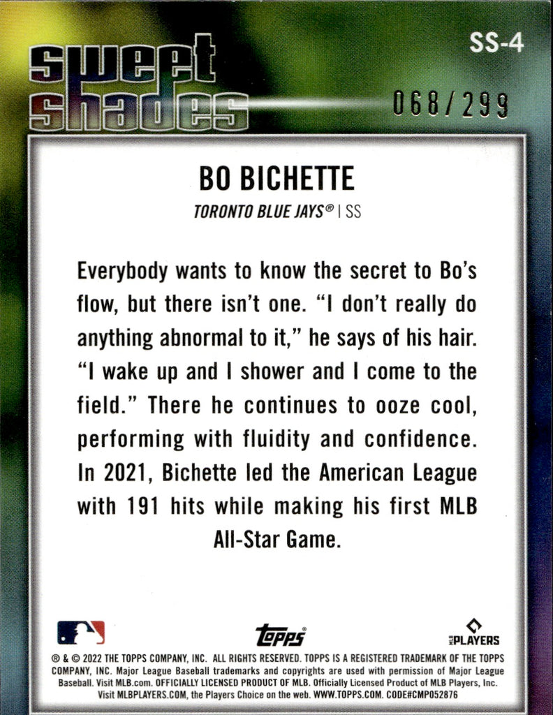2022 Bo Bichette Topps SWEET SHADES 68/299 Toronto Blue Jays #SS-4