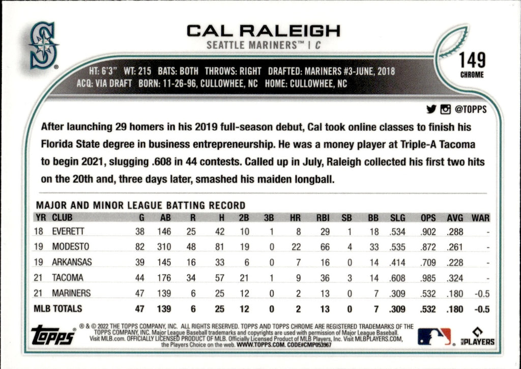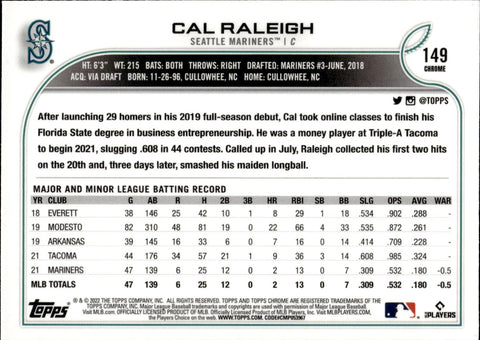 2022 Cal Raleigh Topps Chrome ROOKIE RC #149 Seattle Mariners 3