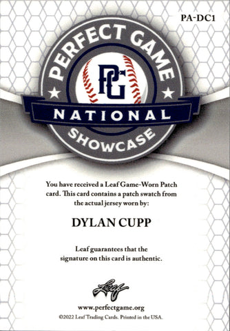 2022 Dylan Cupp Leaf Perfect Game JUMBO PATCH AUTO 2/6 AUTOGRAPH RELIC #PA-DC1 Mississippi State Bulldogs