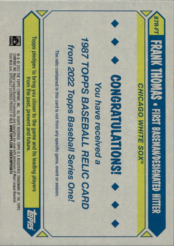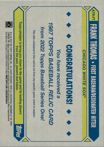 2022 Frank Thomas Topps Series 1 1987 BAT RELIC Chicago White Sox #87R-FT