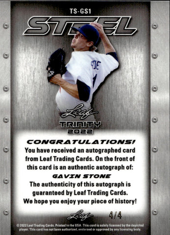 2022 Gavin Stone Lead Trinity GREEN STEEL AUTO 4/4 AUTOGRAPH #TS-GS1 Los Angeles Dodgers