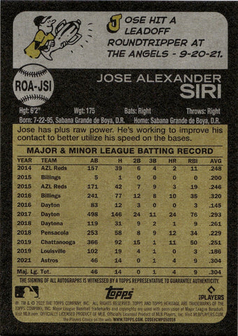 2022 Jose Siri Topps Heritage REAL ONE ROOKIE AUTO Houston Astros #ROA-JSI