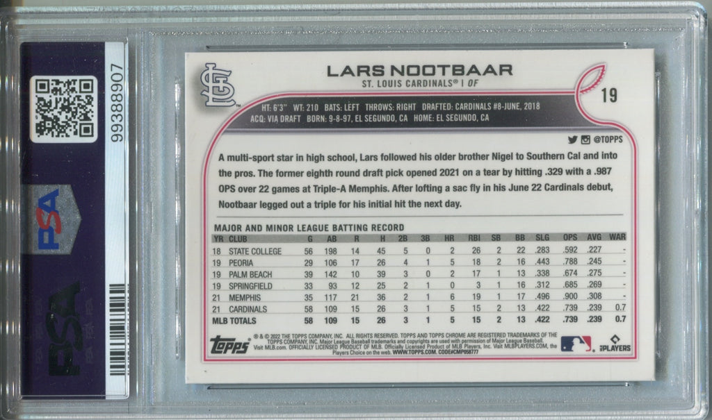 2022 Lars Nootbaar Topps Chrome BEN BALLER EDITION ROOKIE RC PSA 9 #19 St. Louis Cardinals 8907