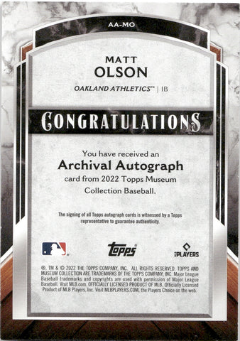 2022 Matt Olson Topps Museum Collection ARCHIVAL AUTOGRAPHS 72/125 AUTO #AA-MO Oakland A's