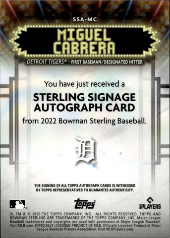 2022 Miguel Cabrera Bowman Sterling SIGNAGE ROSE GOLD REFRACTOR AUTO 5/5 AUTOGRAPH #SSA-MC Detroit Tigers