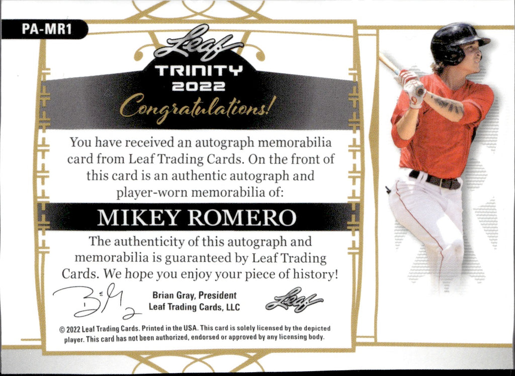 2022 Mikey Romero Leaf Trinity AUTOGRAPH PATCH ROOKIE 97/99 AUTO RC #PA-MR1 Boston Red Sox