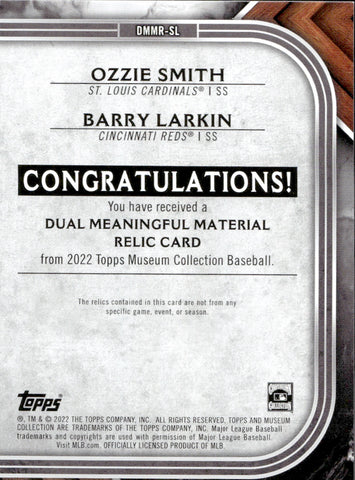 2022 Ozzie Smith Barry Larkin Topps Museum Collection DUAL MEANINGFUL MATERIAL RELIC JERSEY 21/50 #DMMR-SL St. Louis Cardinals Cincinnati Reds