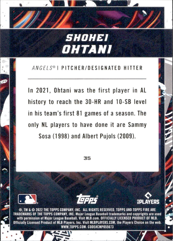 2022 Shohei Ohtani Topps Fire GOLD MINTED #35 Los Angeles Angels
