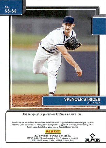2022 Spencer Strider Panini Donruss ROOKIE SIGNATURE SERIES AUTO AUTOGRAPH RC #SS-SS Atlanta Braves