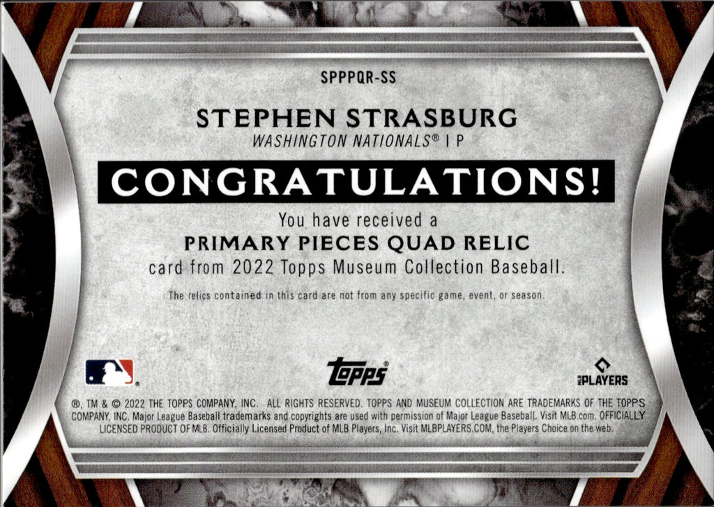 2022 Stephen Strasburg Topps Museum Collection PRIMARY PIECES QUAD JERSEY PATCH 42/75 RELIC #SPPQR-SS Washington Nationals